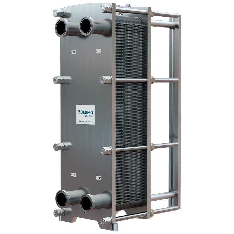O conjunto de placas é montado entre a placa de estrutura fixa e a placa de pressão móvel, sendo comprimido por parafusos de aperto. As placas são equipadas com uma gaxeta, que veda o canal e direciona os fluidos em canais alternados. O número de placas é determinado pela taxa de fluxo, propriedades físicas dos fluidos, queda de pressão e pelo gradiente de temperatura. As ondulações da placa promovem a turbulência do fluido.